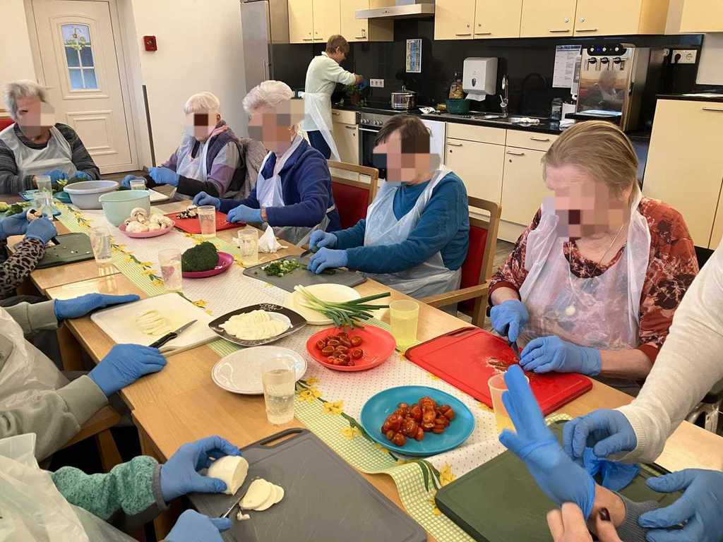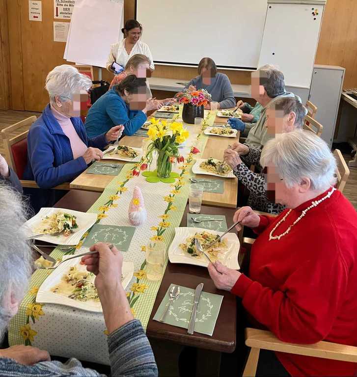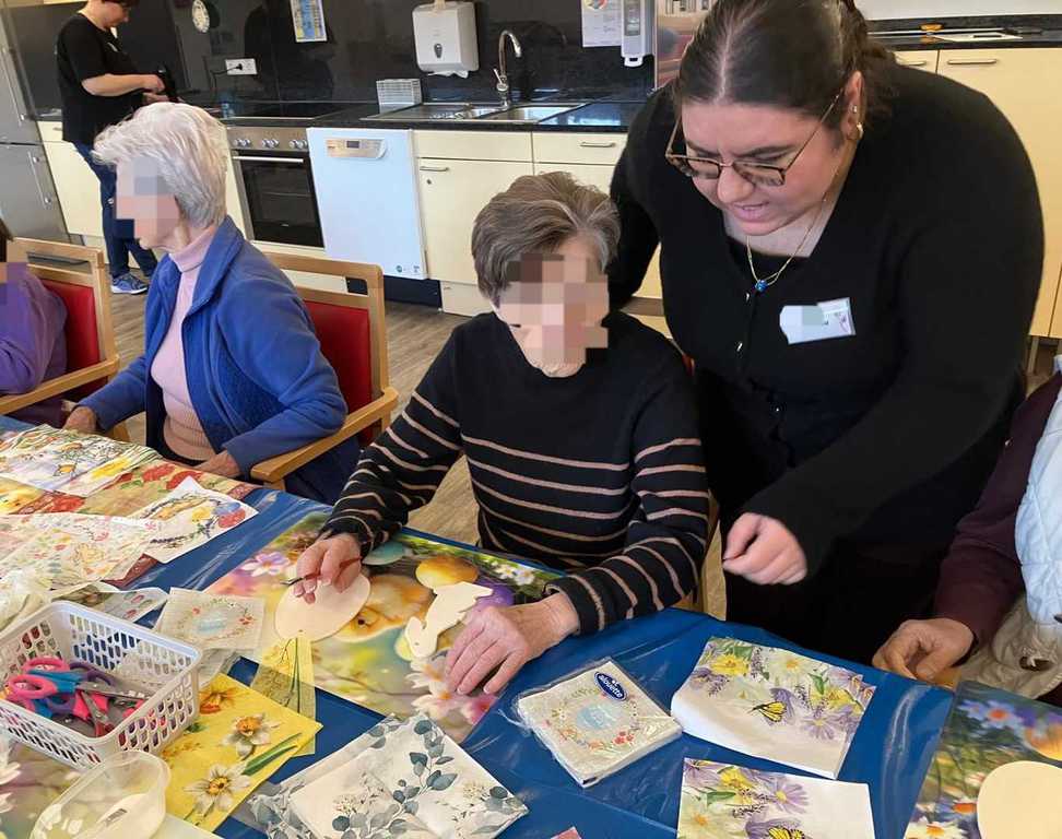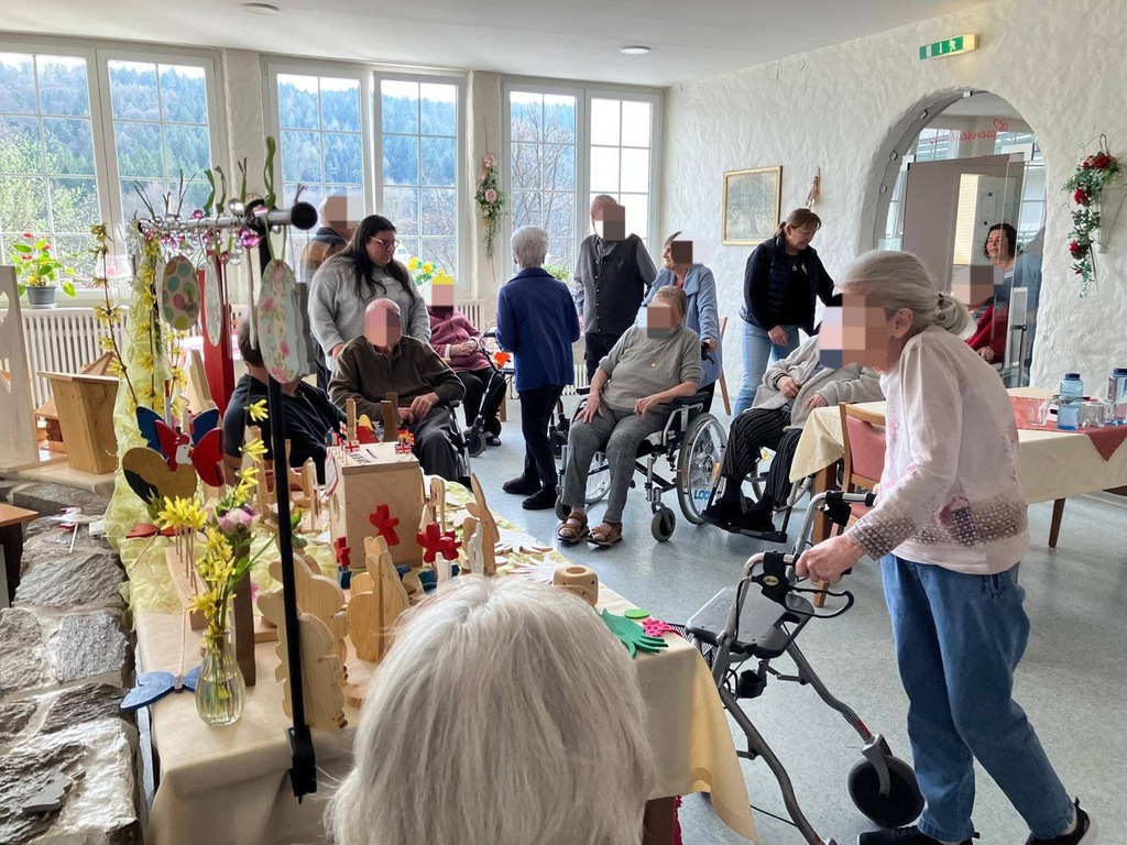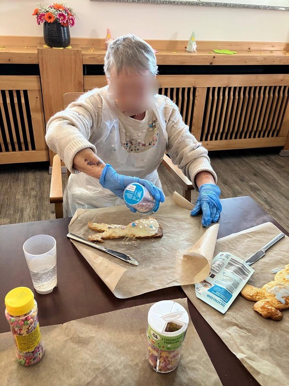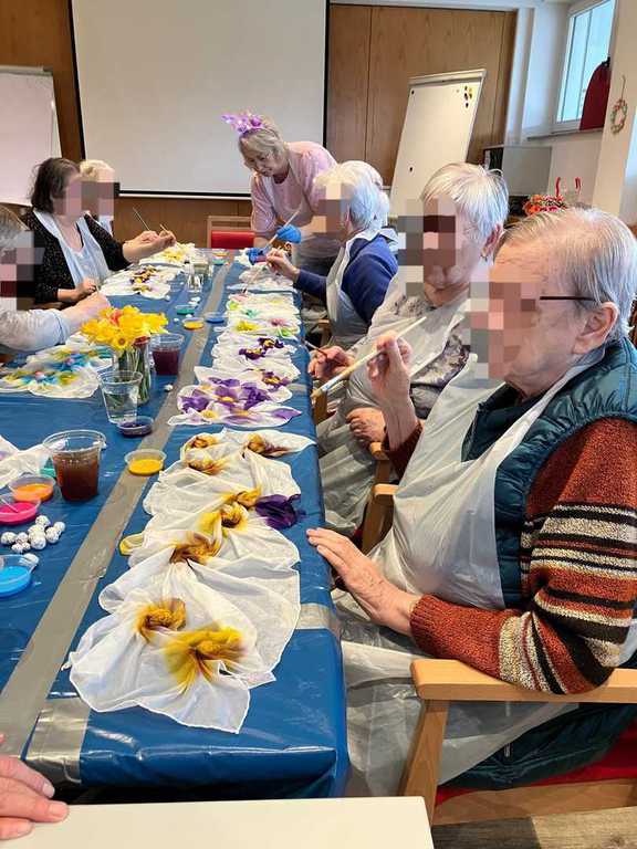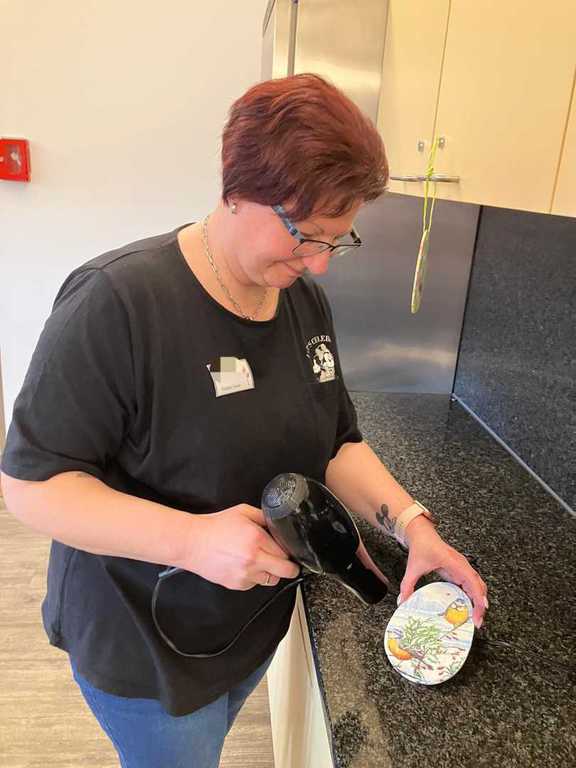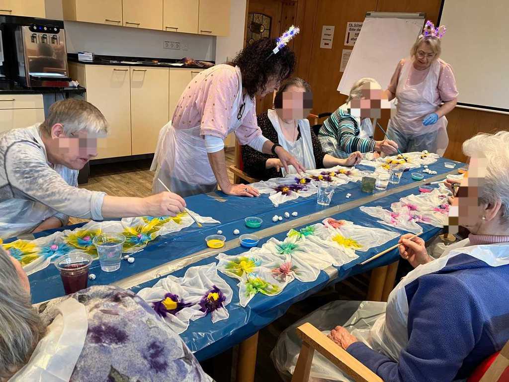 Am Vormittag wurde es kreativ: Mit viel Freude und Fingerspitzengefühl haben unsere Bewohnerinnen und Bewohner die Serviettentechnik ausprobiert. Entstanden sind wunderschöne Frühjahrs- und Ostermotive auf Sperrholz-Ornamenten – liebevoll vorbereitet in unserer Holzwerkstatt.