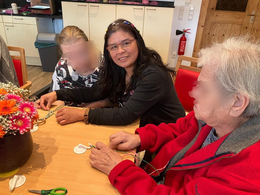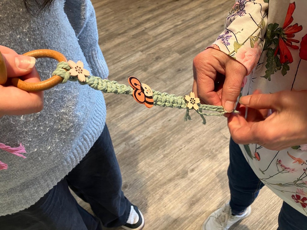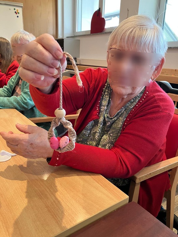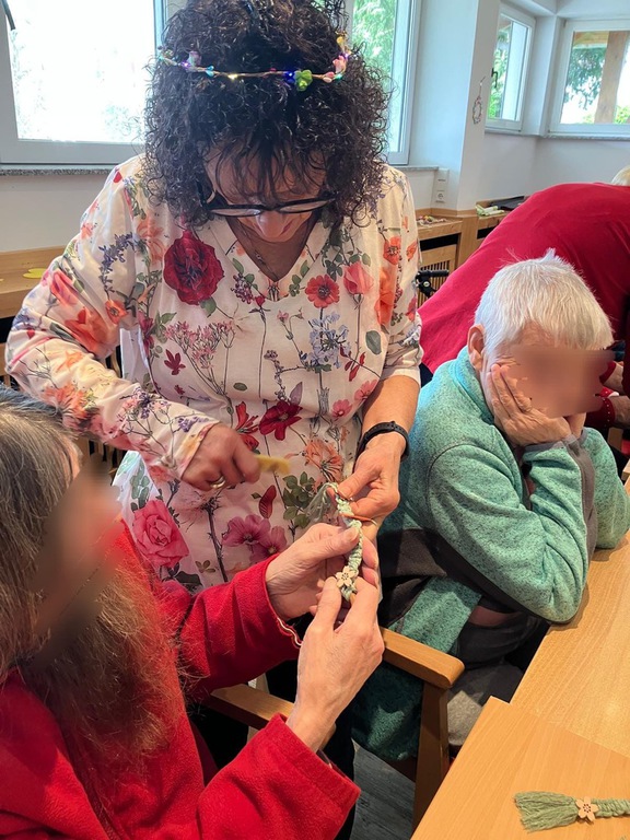 Heute wurde es kreativ! Beim Makramee mussten sich unsere Bewohnerinnen und Bewohner ganz schön konzentrieren – knoten, ziehen, gestalten
