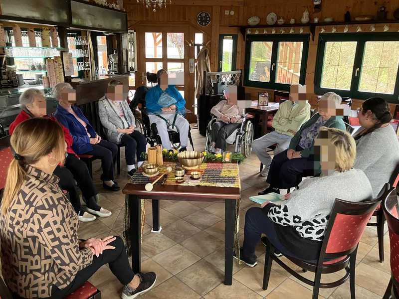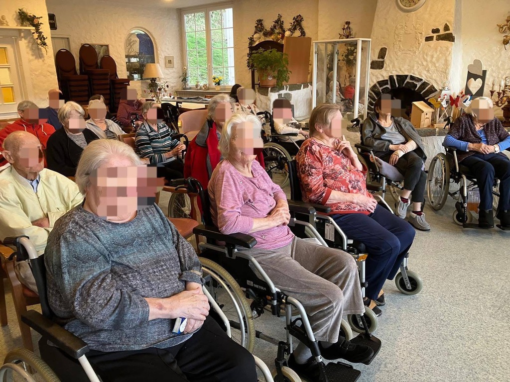 In einer kleinen, interessierten Runde lauschten die Bewohnerinnen und Bewohner aufmerksam und genossen die gemütliche, entspannte Stimmung.